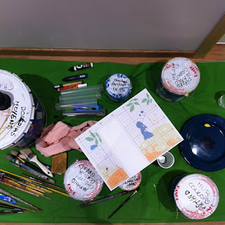 Autre "petit" souci lors de la réalisation : ma recharge de peinture blanche (ouf, ce n'était pas la bleue) m'a littéralement explosé à la figure... et tout autour. "Heureusement", mon corps a fait écran :-/.... Plus d'une heure à tout nettoyer. Grrrrr.