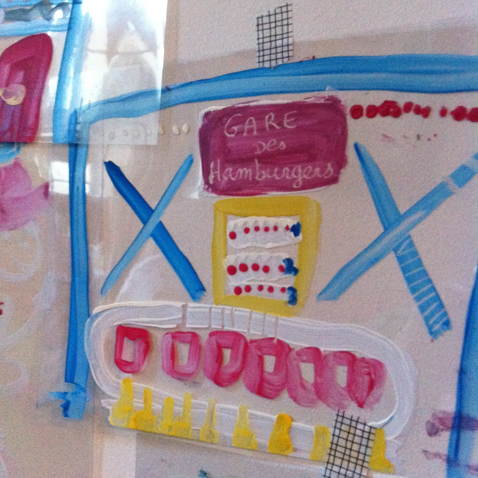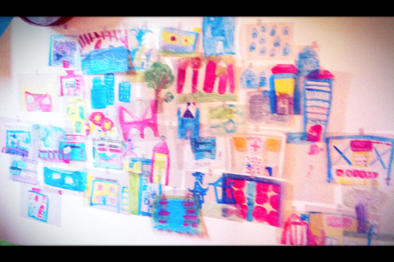 Puis chacun(e) son tour, on accroche, on superpose les transparents sur le mur. Notre ville apparait !